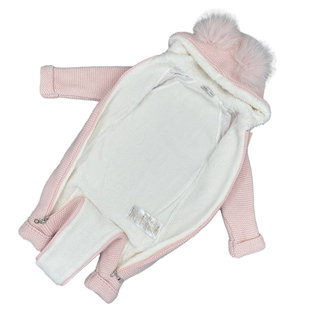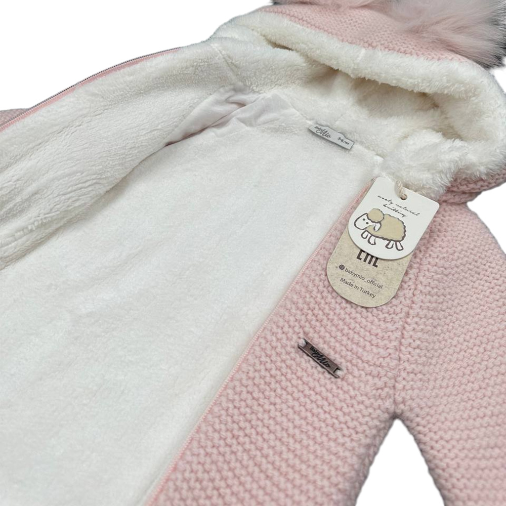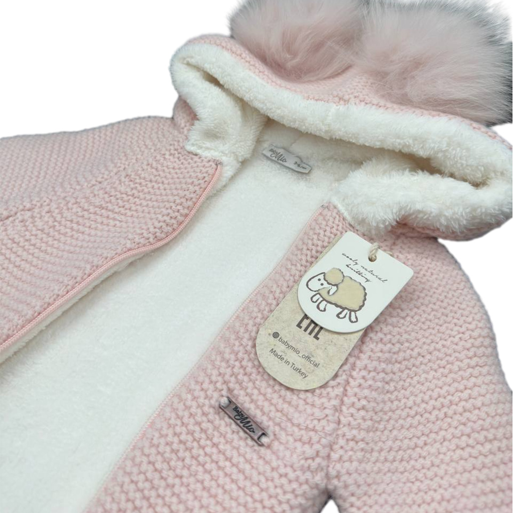 سرهم بافت كركدار وسط مارپيچ صورتی محصول شرکت بیبی میو Baby mio ساخت کشور ترکیه می باشد.سرهمي بافتنی نوزادی صورتي رنگ، لباسی زیبا و شیک برای کودکان عزیز است.داخل لباس به طور کامل کرک دار است که موجب می شود بدن نوزاد به خوبی گرم و از سرما محفوظ بماند. طراحی و تولید آن متناسب با پوست حساس کودکان تولید شده و حساسیتی برای آنان ایجاد نمی کند. جنس رویه لباس نیز از پشم طبیعی و باکیفیت تولید شده است.سرهمی بچگانه دو زیپ در قسمت جلویی خود دارد که به شما کمک می کند بتوانید به راحتی آن به تن کودک کنید و در آورید.
