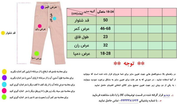 لطفا هنگام خرید حتما و حتما به سایز بندی کالای انتخابی خود و ابعاد اندازه گیری شده دقت فرماييد و این ابعاد را حتما و حتما با ابعاد بدنی يا نمونه لباس فرزند خود مقایسه نماييد تا خریدی مطمئن و بدون مرجوعی و رضایت بخش داشته باشید و اگر سوالی در رابطه با نحوه اندازه گیری ابعاد بدنی فرزند خود داشتید يا به مشكل برخورد كرديد لطفا با همکاران بخش فروشگاهی ما ( از طريق صفحه تماس با ما ) ارتباط برقرار نماييد .