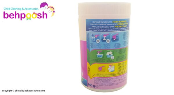 از روی لباس های سفید پاک کنید.برای لکه های معمولی نصف پیمانه (30گرم) و برای لکه های خشک شده و قدیمی
