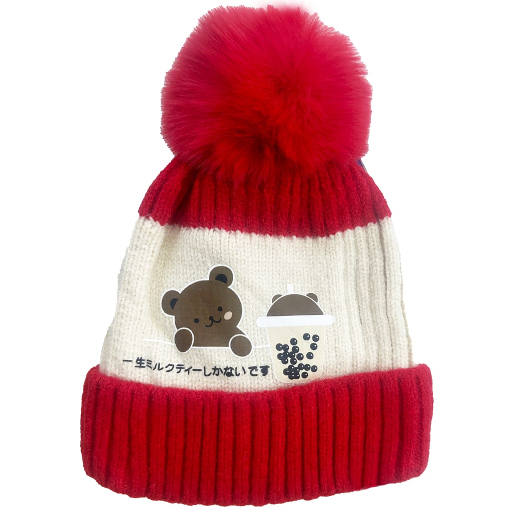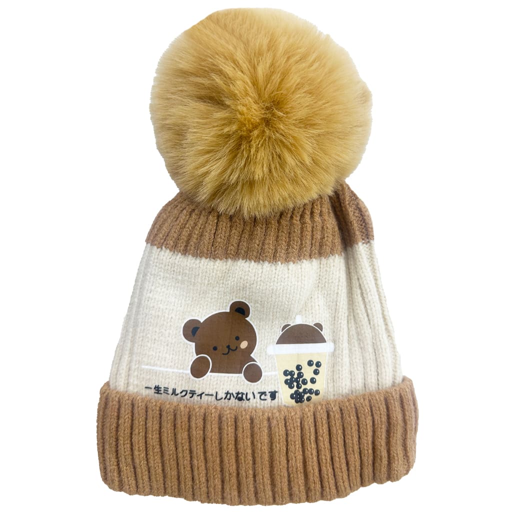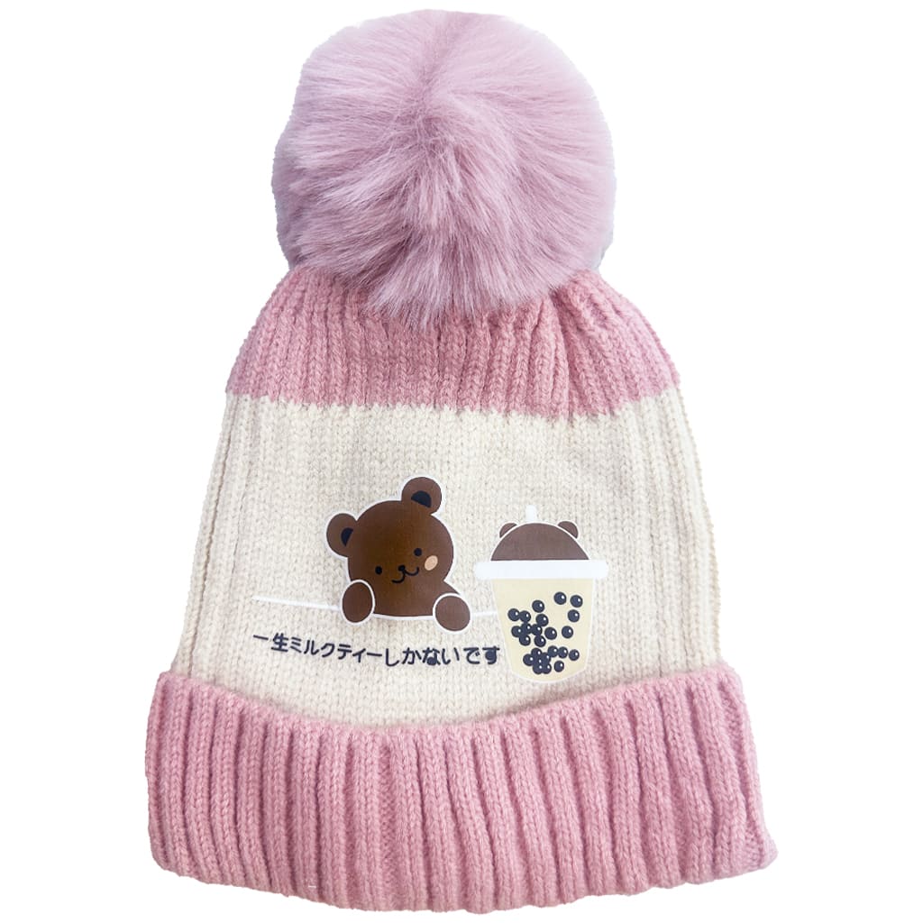 کلاه بافت زمستانی بچگانه طرح خرس و لیوان