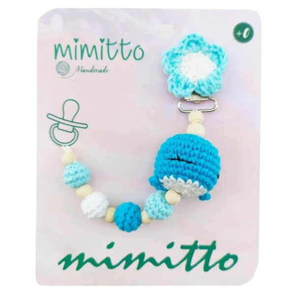 بند پستانک عروسکی بافت آبی Mimitto، یک آویز با طرحهای زیبا و متنوع است که مانع افتادن و کثیف شدن پستانک می شود. جنس این اویز پستانک، کاموایی و قابل شستشو است.