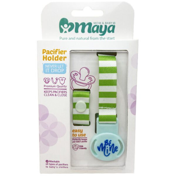بند پستانک پارچه ای راه راه مایا Maya، یکی از اقلام کاربردی در سیسمونی نوزادان است که از افتادن و کثیف شدن پستانک و همچنین گم شدن آن جلوگیری می کند.