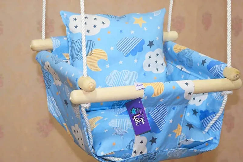 یکی از بهترین سرگرمی هایی که میتوان در خانه برای کودک استفاده کرد، تاب بچه سقفی میباشند. چوب استفاده شده در تاب سقفی بانوچ سنتی Anyia طرح ابر و ستاره جزو مرغوب ترین و باکیفیت ترین چوب ها می باشد. این تاب سقفی را به راحتی میتوان از میله بارفیکس و یا چهارچوب در آویزان کرد. جنس پارچه بکار برده شده در این تاب، کتان پنبه میباشد که برای استحکام بیشتر در سه لایه دوخته شده است. این تاب سقفی دارای دو عدد پشتی میباشد که یکی برای پشت و دیگری برای کف تاب استفاده میشود.