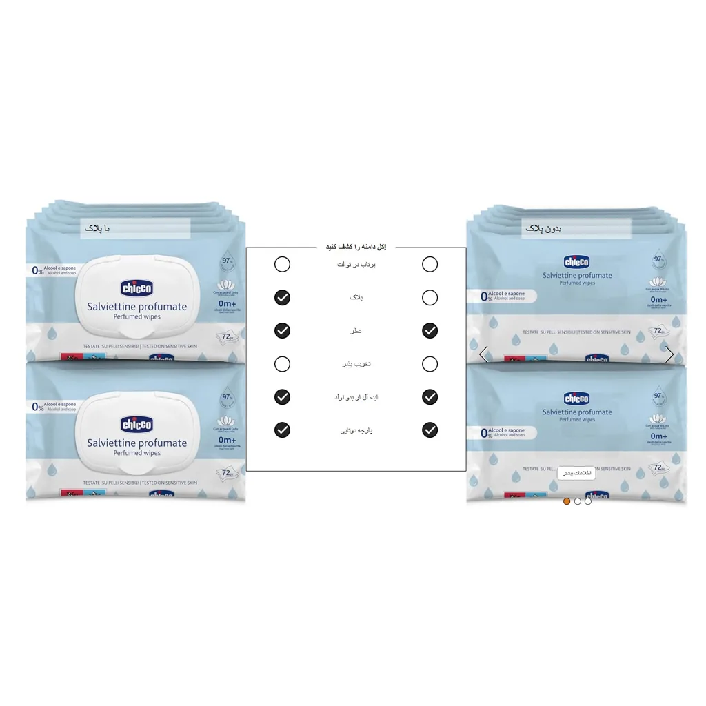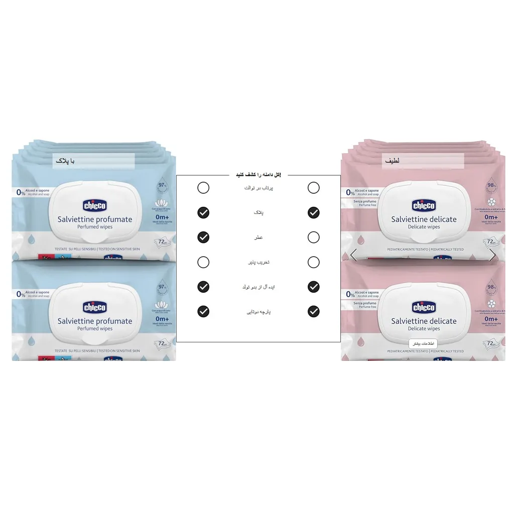 دستمال مرطوب 97درصد آب 72عددی salviettine درب دار چیکو chicco