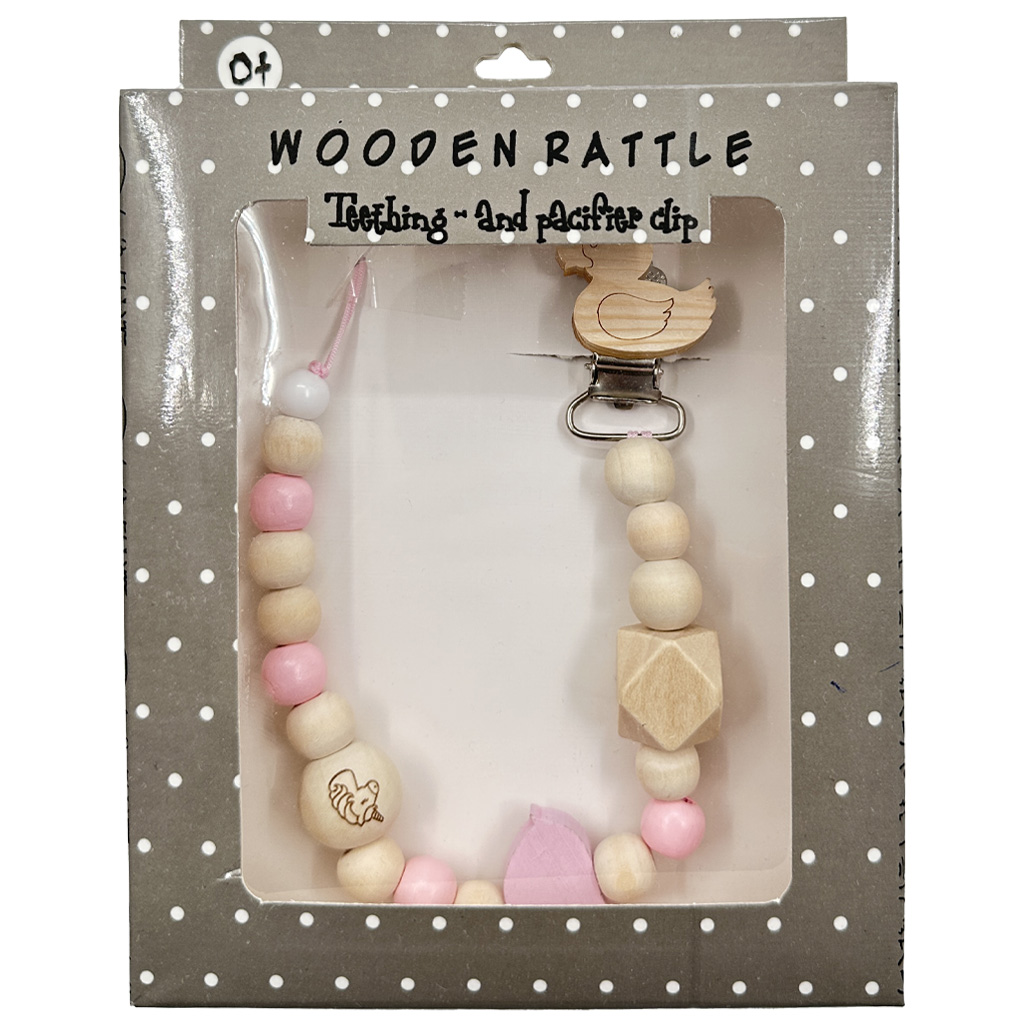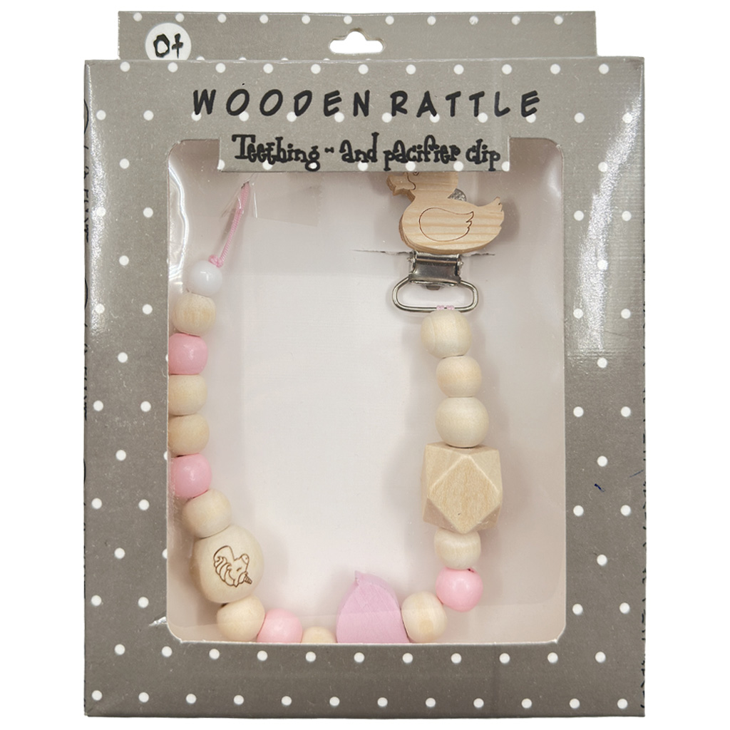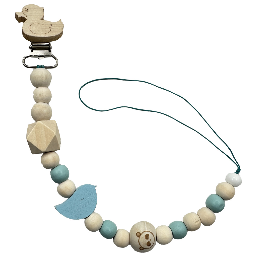 زنجیر پستانک چوبی اردک و گنجشک Wooden Rattle، علاوه بر اینکه یک اکسسوری نوزاد زیبا است، از افتادن و کثیف شدن و یا گم شدن پستانک نیز جلوگیری می کند. این آویز پستانک جنس چوبی و رنگ و طرح های زیبایی مناسب برای سیسمونی نوزادان عزیز دارد.