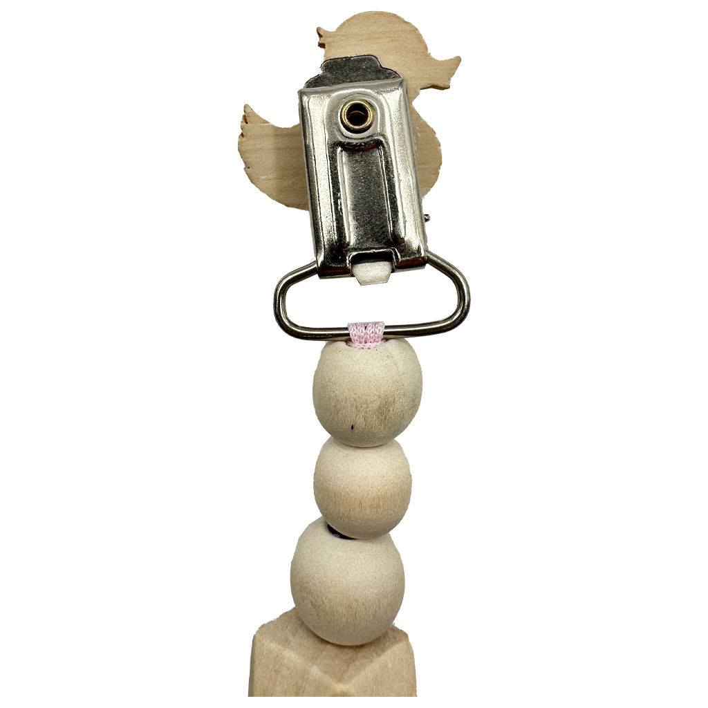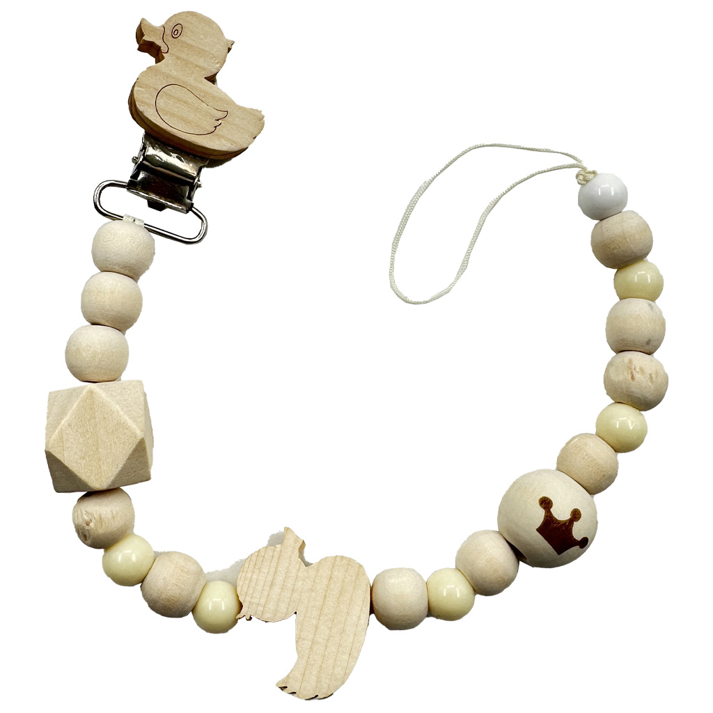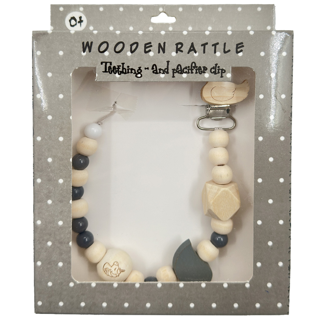 زنجیر پستانک چوبی اردک و گنجشک Wooden Rattle، علاوه بر اینکه یک اکسسوری نوزاد زیبا است، از افتادن و کثیف شدن و یا گم شدن پستانک نیز جلوگیری می کند. این آویز پستانک جنس چوبی و رنگ و طرح های زیبایی مناسب برای سیسمونی نوزادان عزیز دارد.