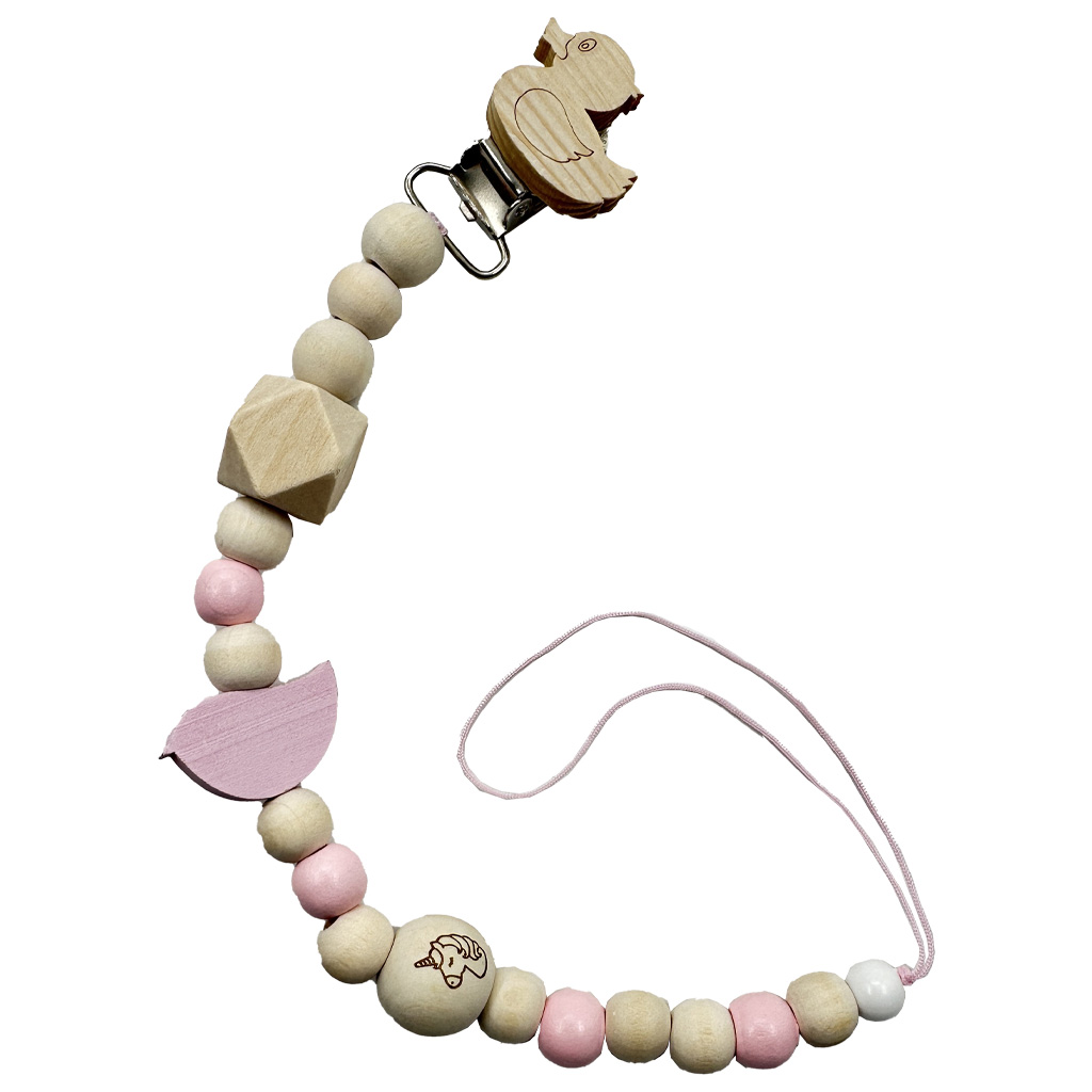 آویز پستانک نوزاد از مهره های چوبی و زیبایی تولید شده و فاقد مواد مضر برای کودکان است. زنجیر آن طول 12 سانتی متری دارد و مناسب برای اتصال به همه پستانک ها می باشد.