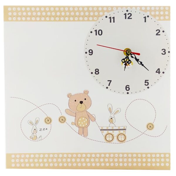 ساعت دیواری کودک با طرح های متنوع و زیبای ایرانی یکی از اکسسوری های پرکاربرد در اتاق کودک می باشد. ساعت دیواری اتاق کودک طرح خرس و خرگوش قابلیت ست شدن با سایر لوازم اتاق از جمله آباژور، کفپوش، پرده و … را دارند که سبب میشود اتاق کودکتان بسیار شیک و جذاب به نظر برسد.