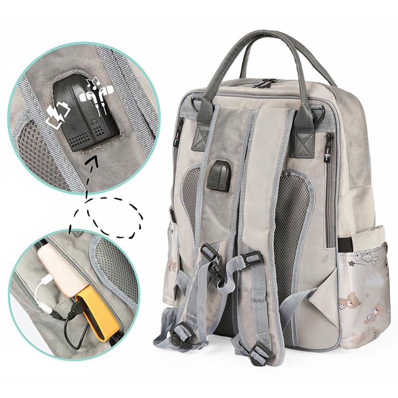 این ساک کوله پشتی امکانات زیادی از جمله داشتن زیرانداز تعویض پوشک ، محفظه پستانک و فیکسر کالسکه و … دارد.