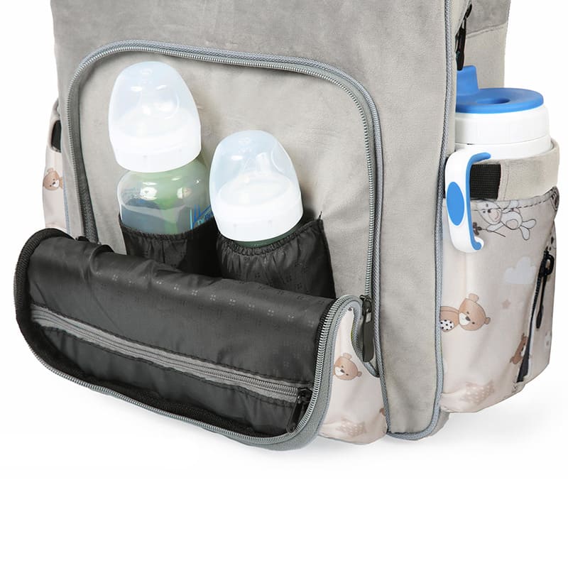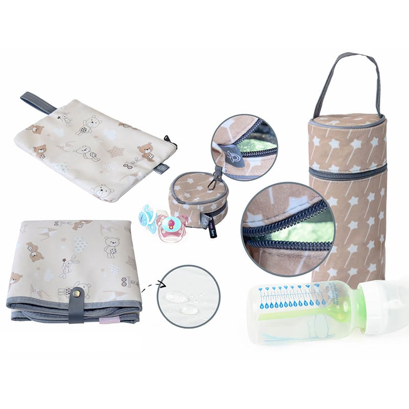 کیف لوازم نوزاد دارای پدهای ضد تعریقی است که موجب می شود هنگام حمل کیف از تعریق بدن جلوگیری شود. کیف قابل تمیز شدن است. برای تمیز کردن آن می توان از فوم تمیز کننده و یا پارچه آغشته به مواد شوینده استفاده کرد.