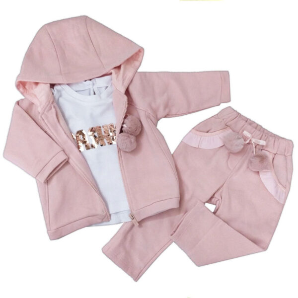 ست سویشرت و شلوار و بلوز دخترانه صورتی محصول شرکت ایندیگو indigo ساخت کشور ایران است.