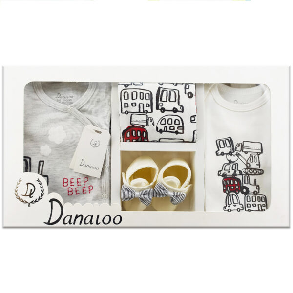 ست 9 تکه نوزادی کامیون و تراکتور دانالو Danaloo، یک ست لباس کودک با جنس نرم و لطیف است. این ست کودک طرح های متنوعی دارد و ضد حساسیت می باشد.