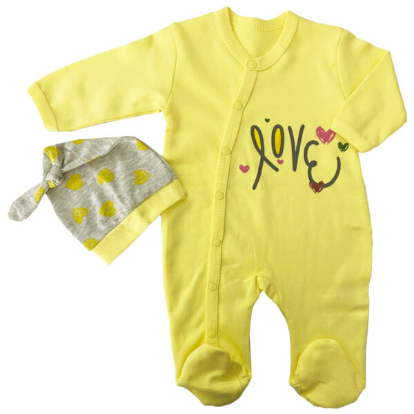 سرهمی و کلاه نوزاد طرح قلب زرد محصول برند مینیسی Minisse تولید کشور ترکیه می باشد.
