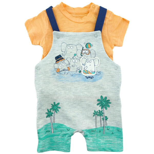 سرهمی پیش بندی و بلوز آستین کوتاه طرح فیل محصول شرکت تانگز Tongs ساهت کشور ترکیه است.
