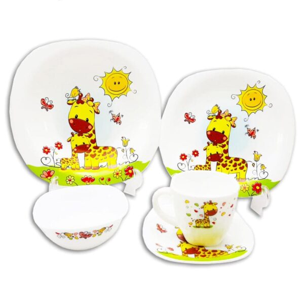 سرویس غذاخوری آرکوپال چهارگوش طرح زرافه پارس اوپال دارای جنس چینی میباشد که در فرایند ساخت آن از هیچ ماده شیمیایی و مضری استفاده نشده. این ظروف غذاخوری آرکوپال کودک شامل بشقاب غذاخوری، پیش دستی، کاسه، فنجان و زیر فنجان می باشد. این ست غذاخوری بسیار با دوام و با کیفیت ، دارای طراحی جذاب و رنگ آمیزی اشتها بر انگیز برای کودکان میباشد. این ظروف قابل شستشو در ماشین ظرفشویی میباشد و در برابر حرارت مقاوم هستند لذا میتوان به راحتی این ظرف غذا را در مایکروویو استفاده کرد.