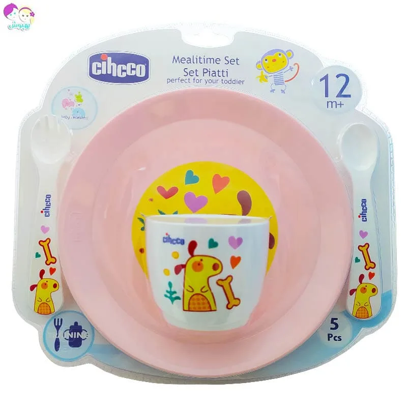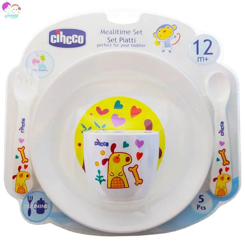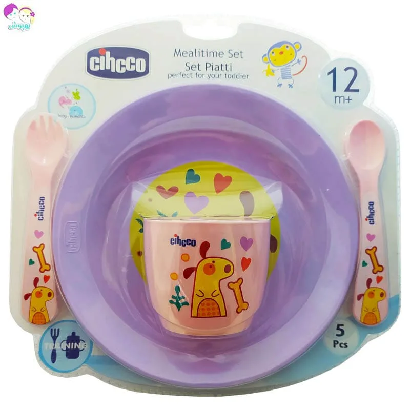ست ظرف غذای پنج تکه کودک طرح سگ و گربه Cihcco از جنس ملامین بوده که ضريب شکست اين محصول را نسبت به نمونه مشابه در بازار را بسيار کاهش داده و از همه مهم تر گذر زمان و شستشوی مداوم تغييری در رنگ و پوسته پوسته شدن سطح محصول به وجود نخواهد آورد و ضمناً شفافيت و رنگ براق ظرف حفظ خواهد شد. این ست شامل قاشق، چنگال، 2 عدد بشقاب و یک لیوان می باشد. این ست به گونه ای طراحی شده است که احتمال وارونه شدن و لغزش در آنها بسیار کم است. سرویس 5 تکه چیکو به دلیل داشتن طرح های حیوانات برای کودکان بسیار جذاب است.