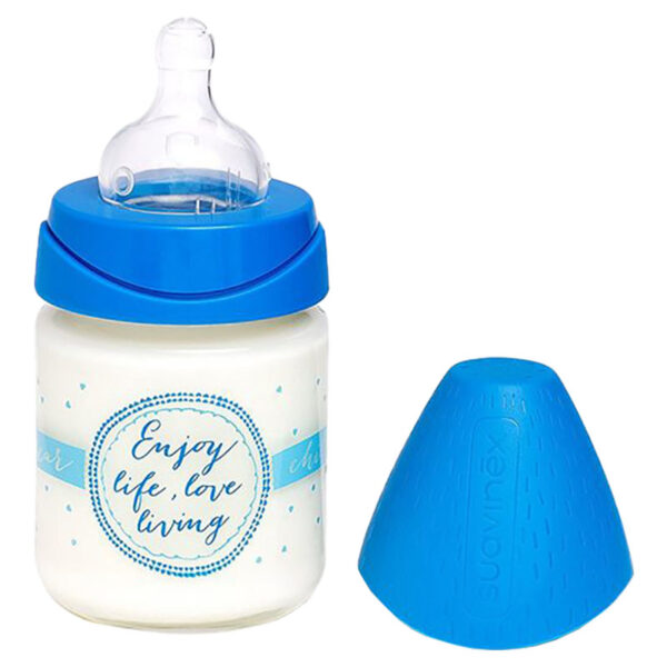 شیشه شیر دارای درجه بندی است و سایز آن مناسب برای نوزادان از بدو تولد می باشد. شیشه شیر را می توان به صورت دستی یا در ماشین ظرفشویی شست.