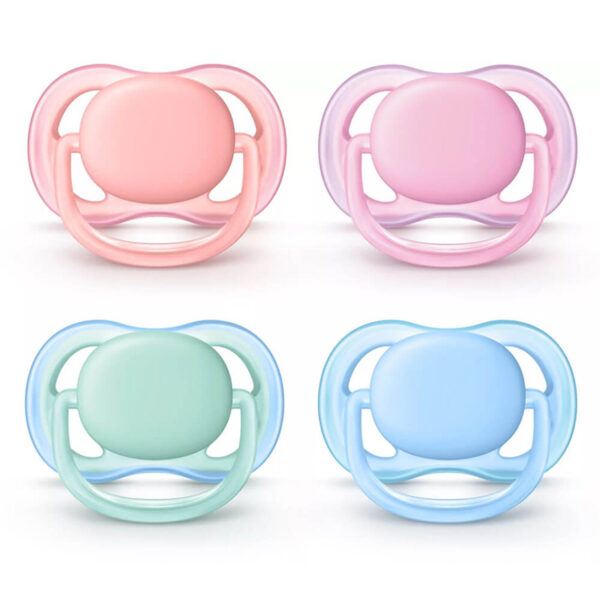 پستانک 2 عددی 0-6 ماه رنگی ساده Ultra Air اونت Avent، یک پک دوتایی پستانک است که کاملا استاندارد است و 98 درصد کودکان آن را می پذیرند.