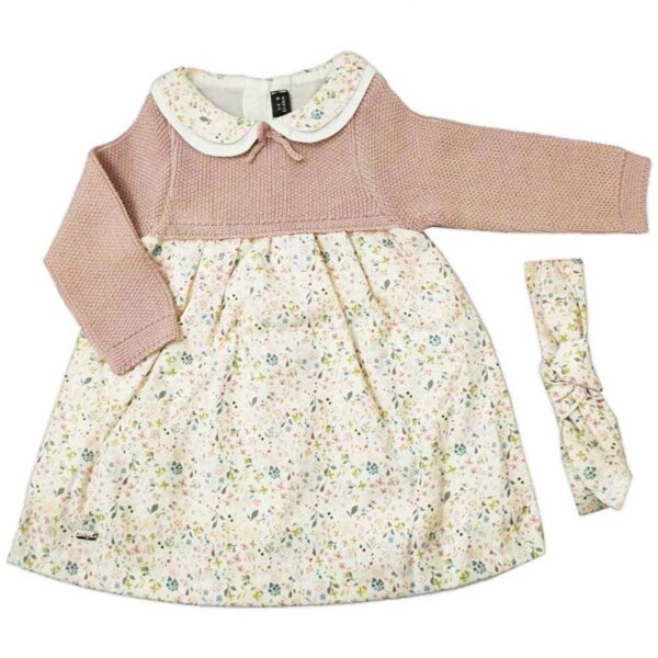 لباس دخترانه صورتی جنس نخ پنبه ای دارد نرم و ضد حساسیت می باشد. پیراهن طرح دو تکه بافت بچگانه جنس گرمی دارد و مناسب برای استفاده در فصل پاییز و زمستان می باشد. پیراهن بافت نوزادی دارای سایز بند برای نوزادان از ۹ ماهگی تا ۲۴ ماهگی است.