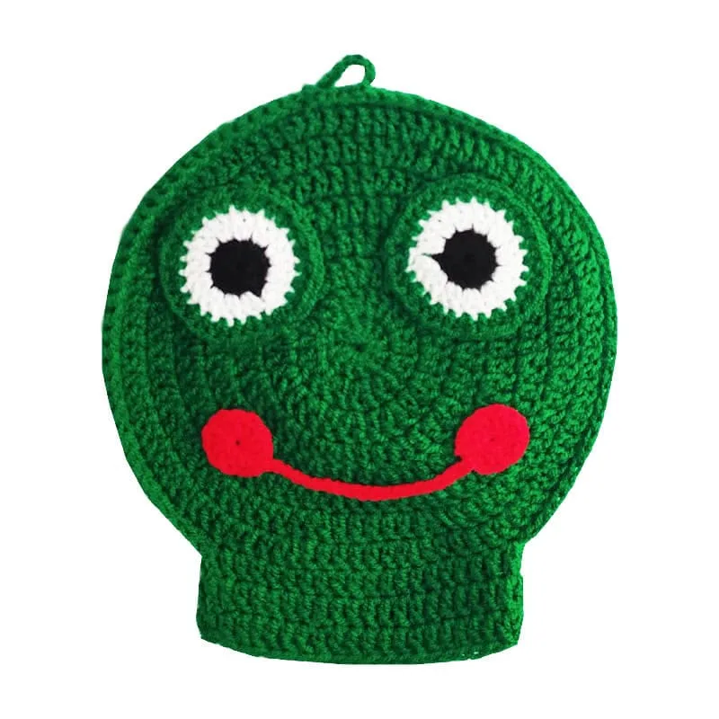 لیف حمام کودک دست بافت طرح قورباغه ساخته شده از الیاف 100 درصد نخ تمیز کننده ای عالی می باشد